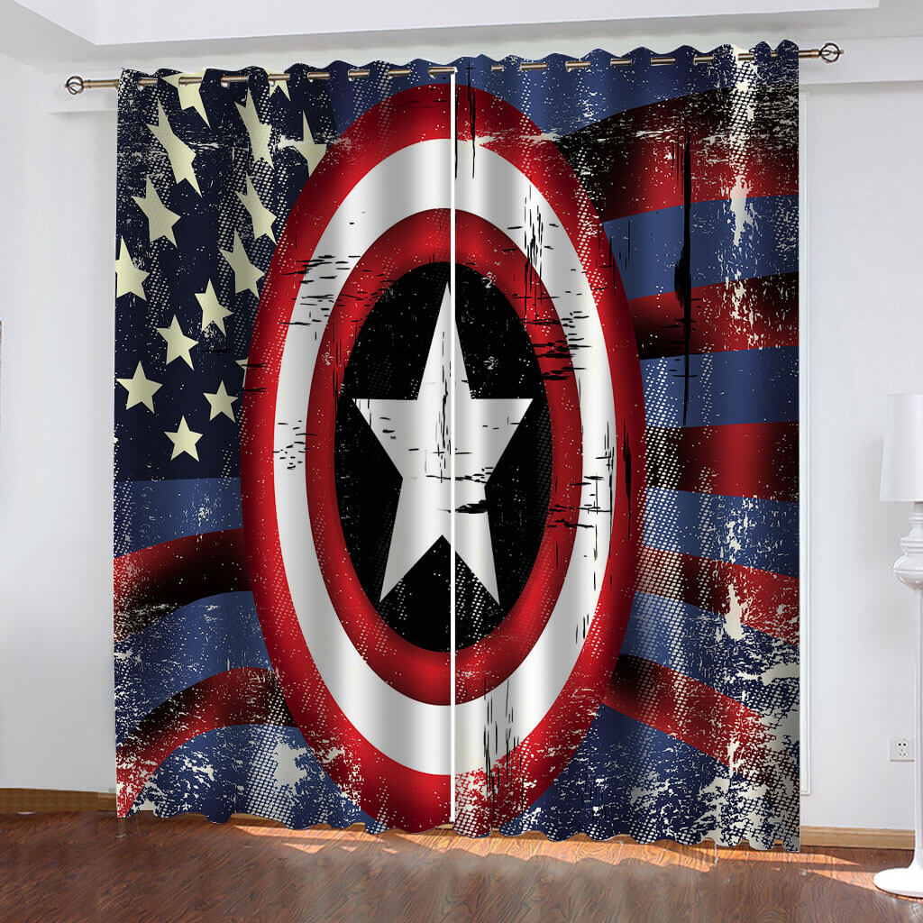 Captain America Curtains Cosplay Blackout Window Drapes Room Decoration